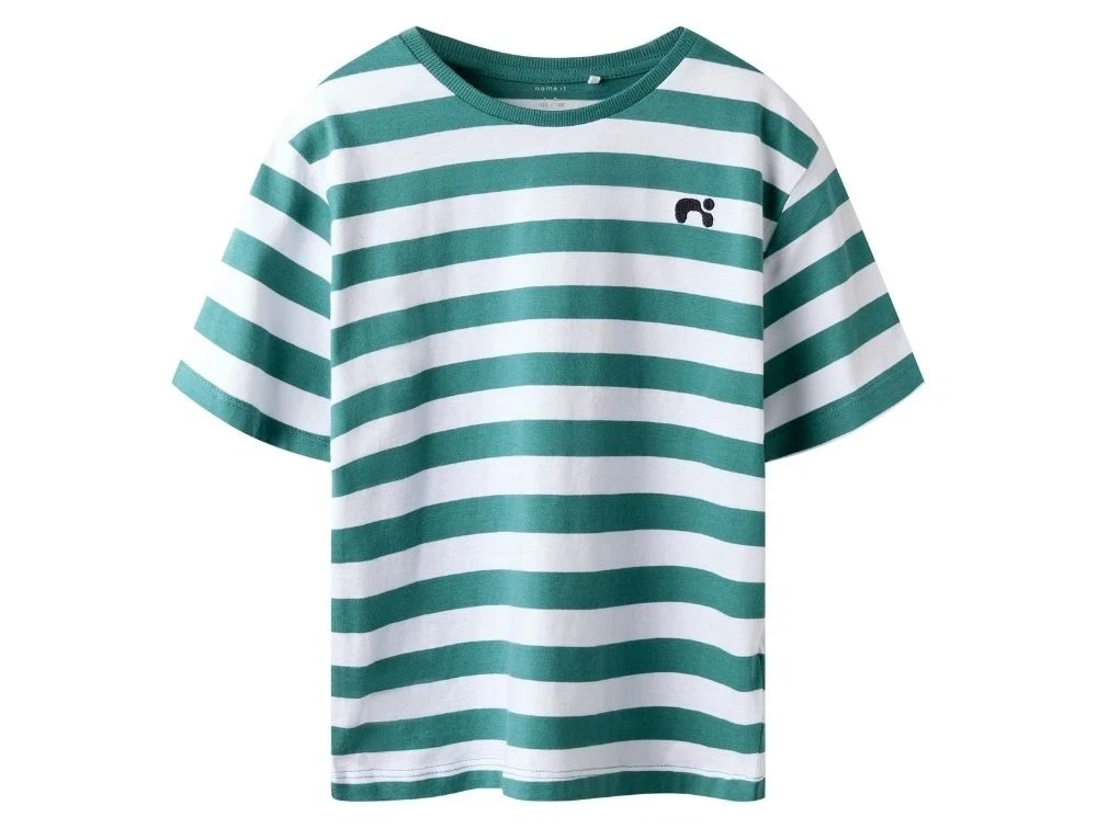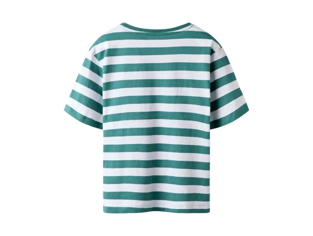 Grønstribet T-shirt fra Name It i blød jerseykvalitet med rund hals og regulær pasform.