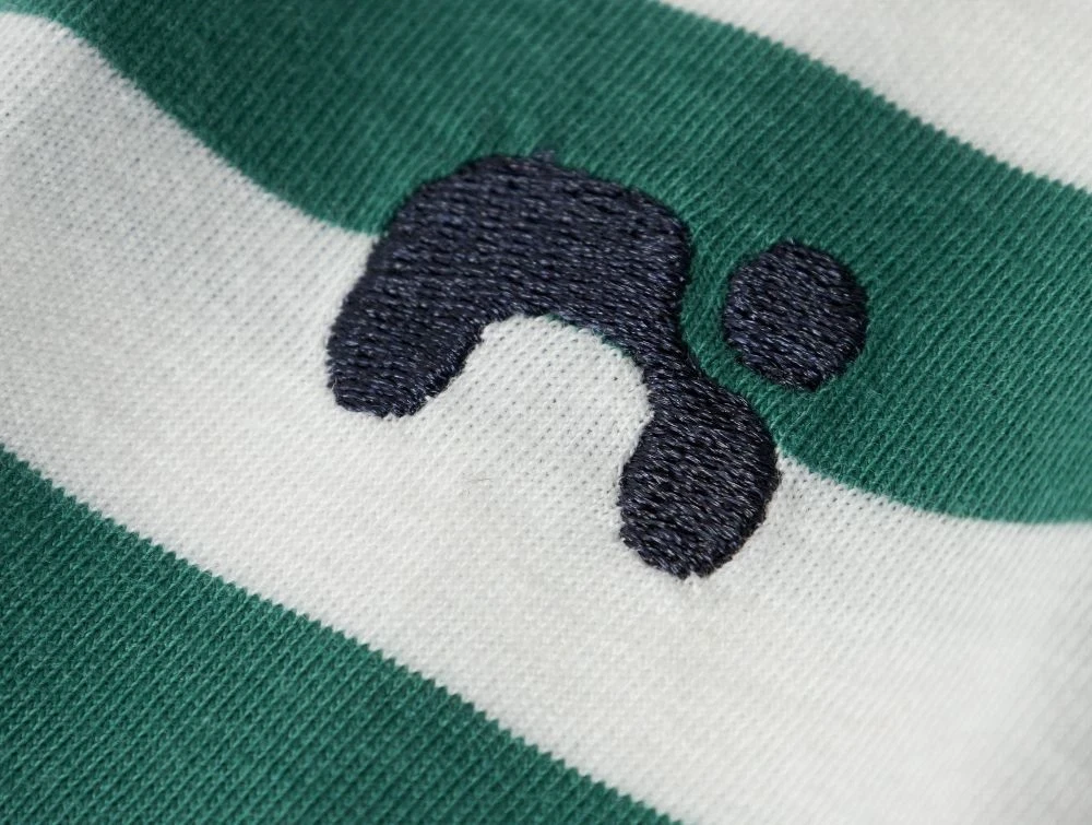 T-shirt fra Name It i grøn (deep jungle) med striber og en lille broderet figur på brystet.