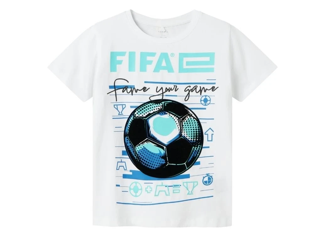 Kortærmet T-shirt i hvid (bright white) med FIFA-print fra Name It.