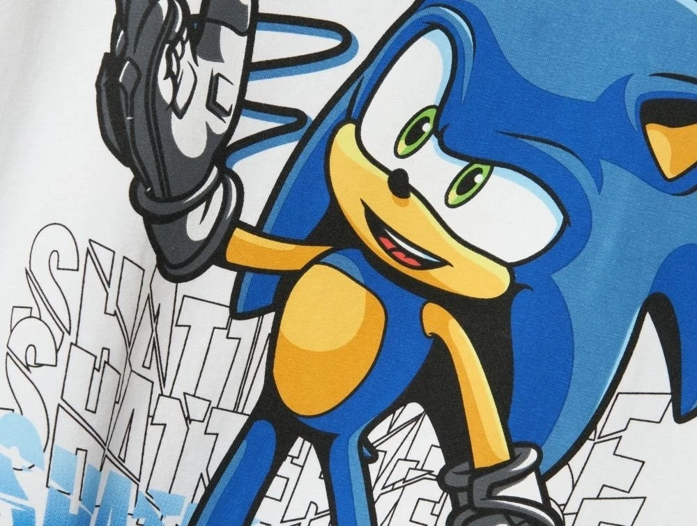 T-shirten har en afslappet pasform, korte ærmer og er lavet i en blød og strækbar jerseykvalitet, som sikrer god komfort og bevægelsesfrihed. På fronten ses et farverigt print af den ikoniske karakter Sonic.