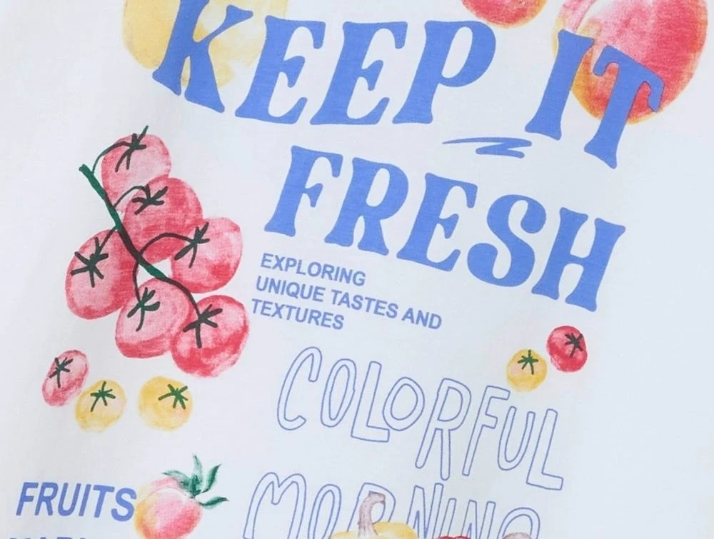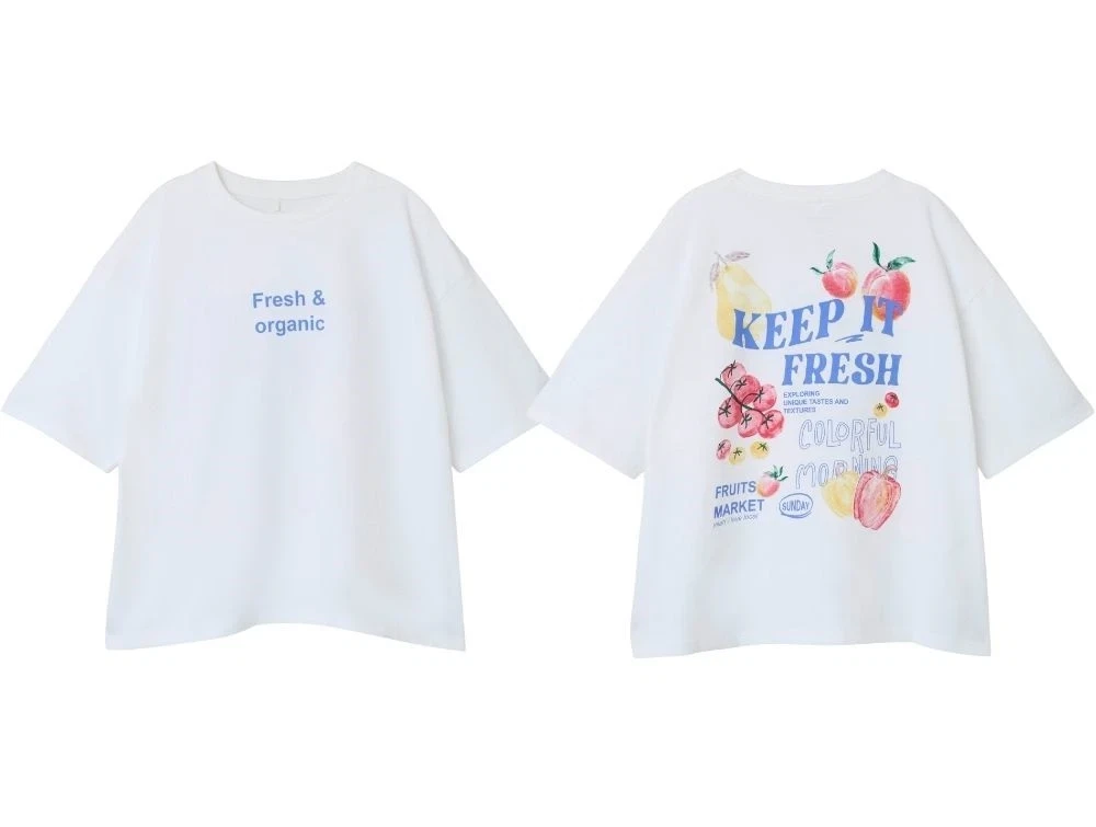 Hvid t-shirt fra Name It med tekstprint foran og bagpå med budskab om friskhed og økologi.
