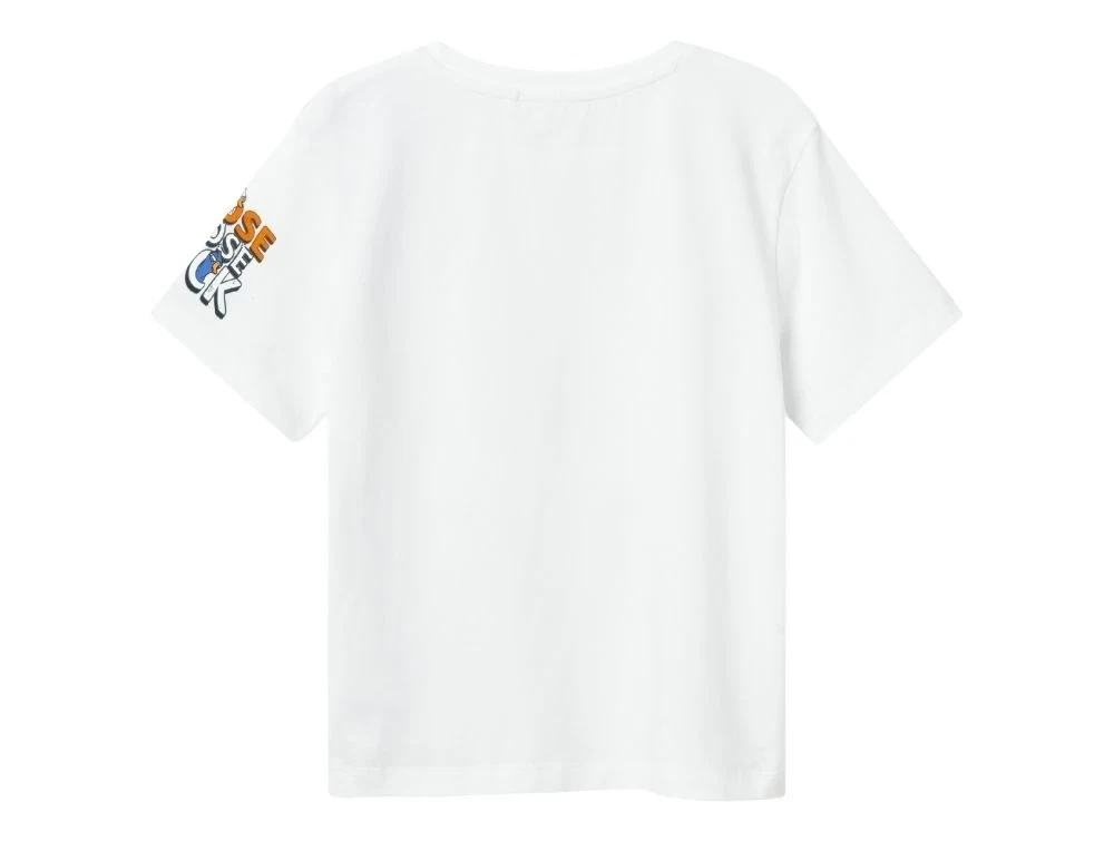 Hvid t-shirt fra Name It med Goose Goose Duck-print på fronten.