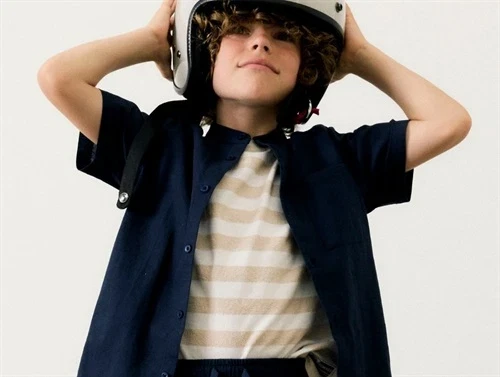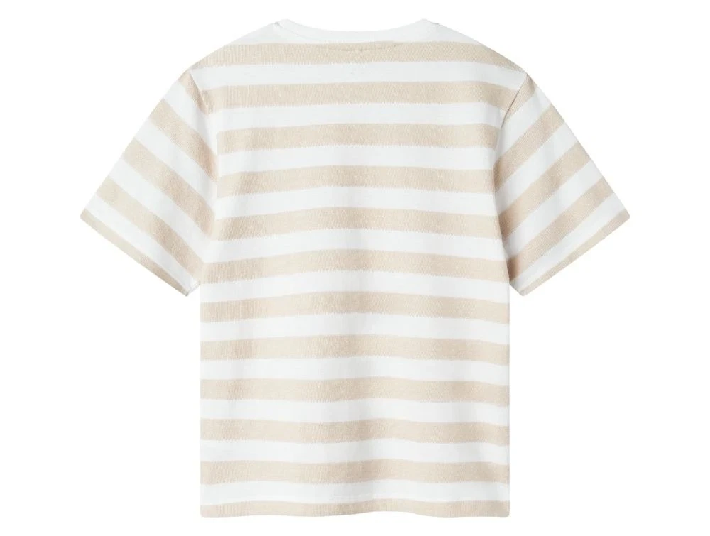 Stribet t-shirt i hvid og sandfarvet fra Name It.