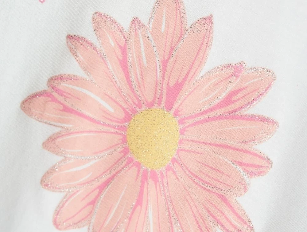 Hvid t-shirt fra Name It med stort printet blomst på fronten.