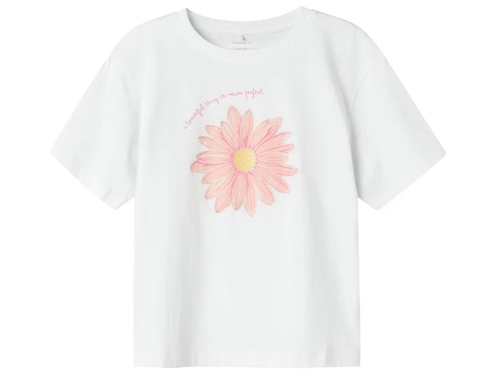 Name It t-shirt lucent hvid med blomstName It t-shirt lucent hvid med blomst