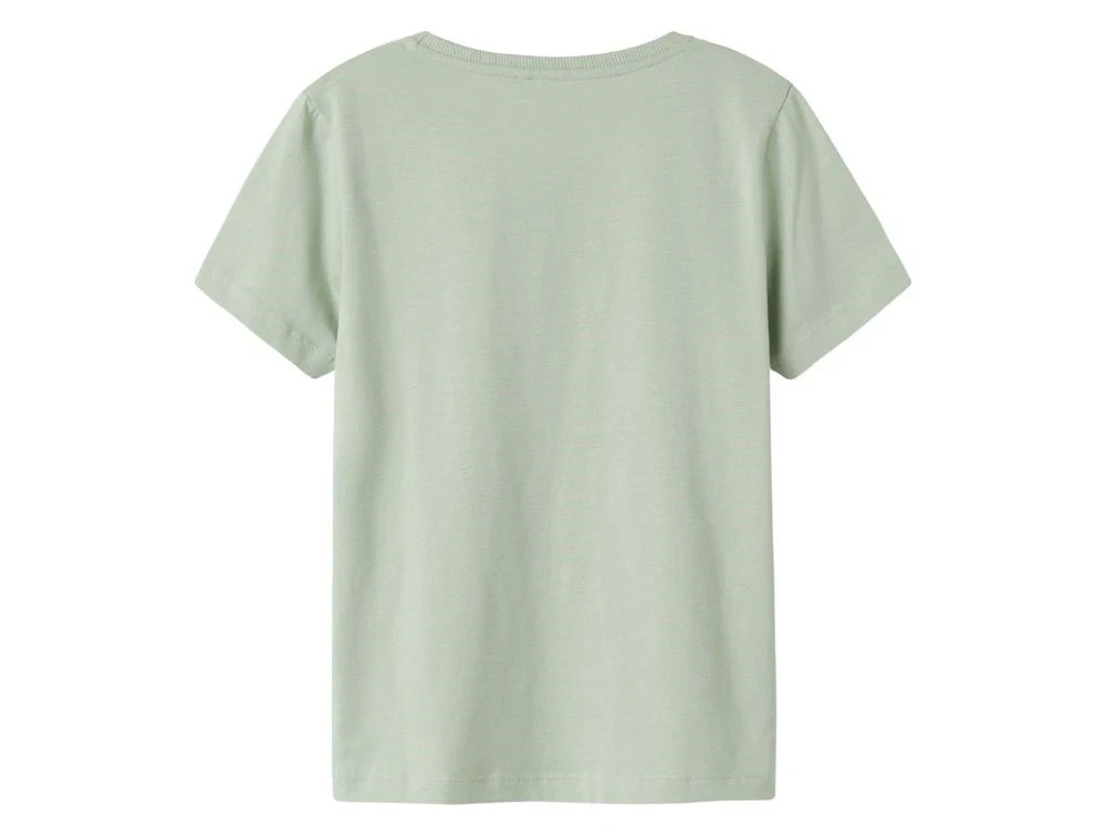Lys grøn T-shirt med skateboard-isprint og tekst fra Name It: