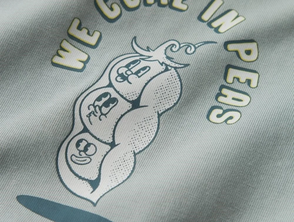 T-shirten har korte ærmer, rund hals og et humoristisk print af en ærtebælg med teksten: "we come in peas". En sjov og afslappet T-shirt til sommerens hverdage.