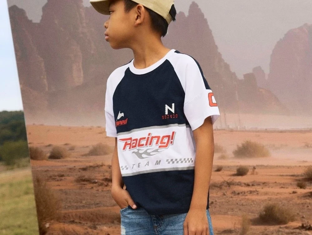 Dreng klædt i mørkeblå og hvid T-shirt med motorsportprint fra Name It 13242640 navy blazerMørkeblå og hvid T-shirt med motorsportprint fra Name It 13242640 navy blazerDreng klædt i mørkeblå og hvid T-shirt fra Name It 13242640 navy blazerMotorsportprint på mørkeblå og hvid T-Shirt fra name It 13242640 navy blazer