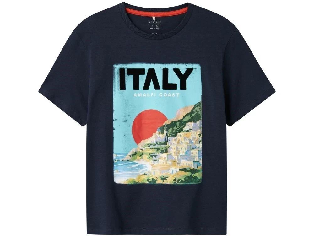 T-shirt i marineblå med print af Amalfikysten i Italien fra Name It.