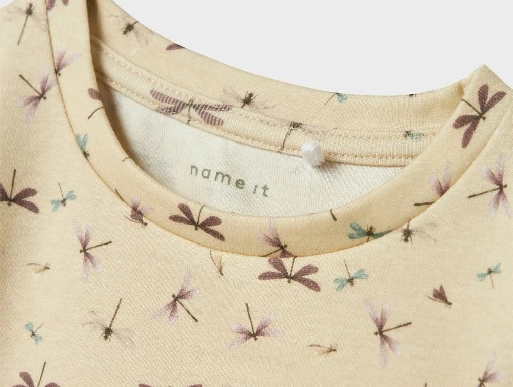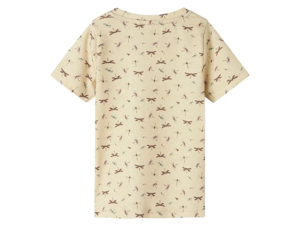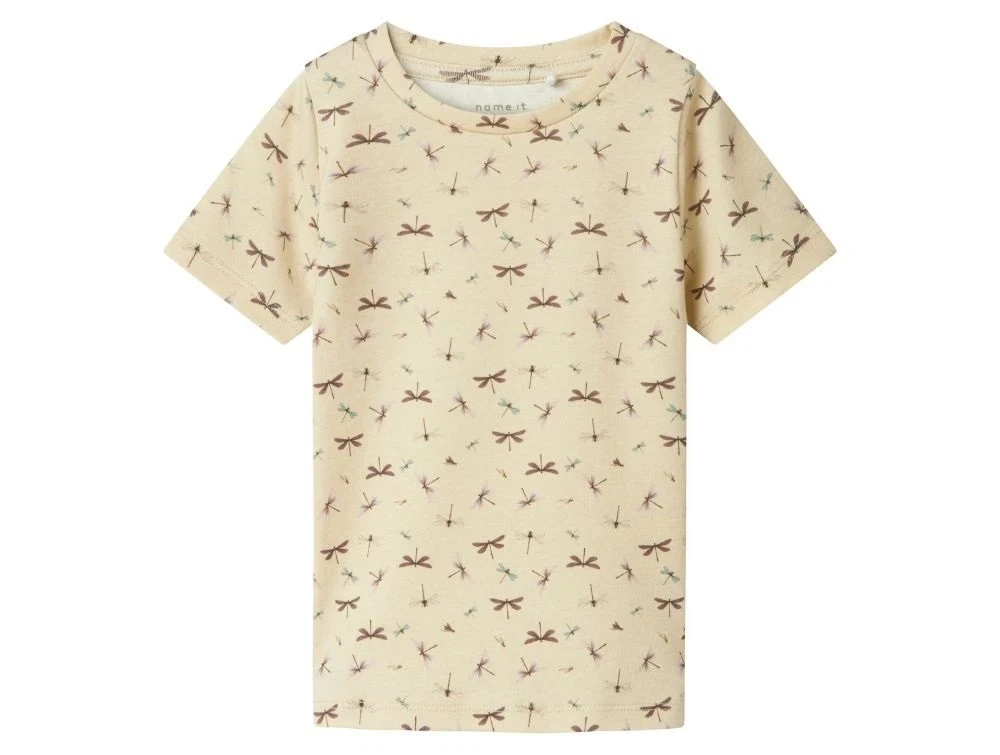 Kortærmet t-shirt i farven råhvid (summer sand) med print af guldsmede fra Name It.