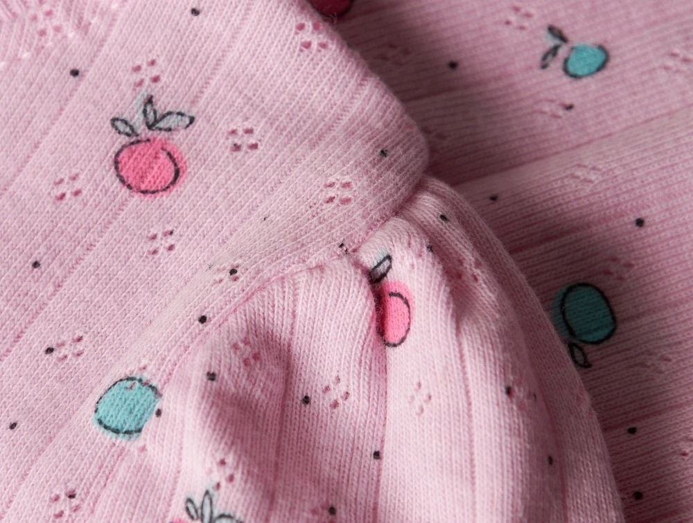 T-shirt i lyserød nuance (sweet dreams) fra Name It med sødt frugtprint og fine hulmønstre.