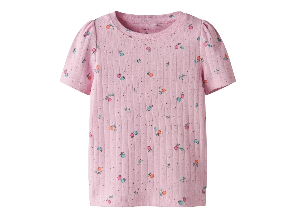 Name It T-shirt i lyserød med frugtprint og puffærmer