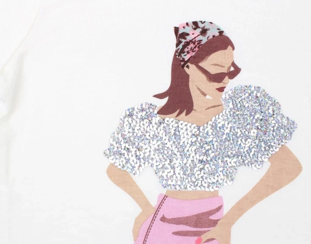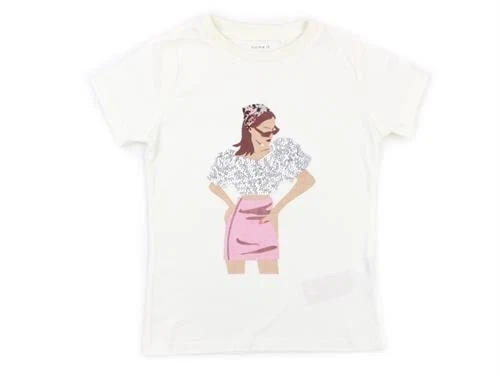 Kortærmet t-shirt i farven white alyssum med print og palietter fra Name It.