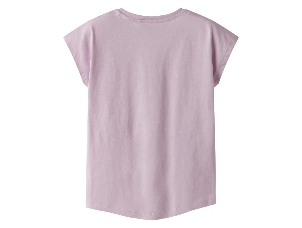 T-shirt i rosa violet nuance fra Name It med stort print af kolibri og teksten "Fly like a hummingbird".