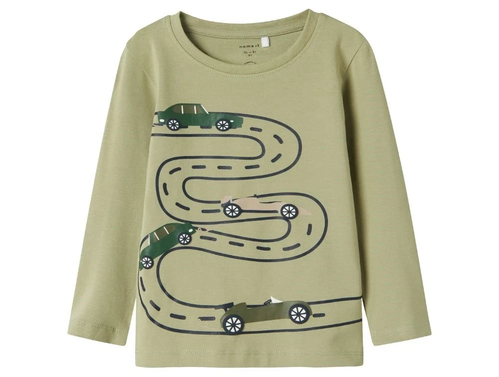 Langærmet t-shirt i farven tea med bilprint fra Name It.