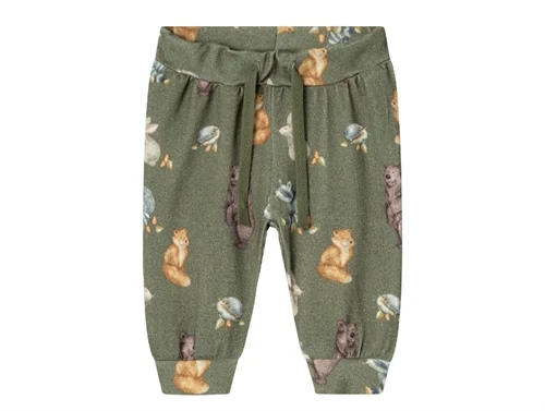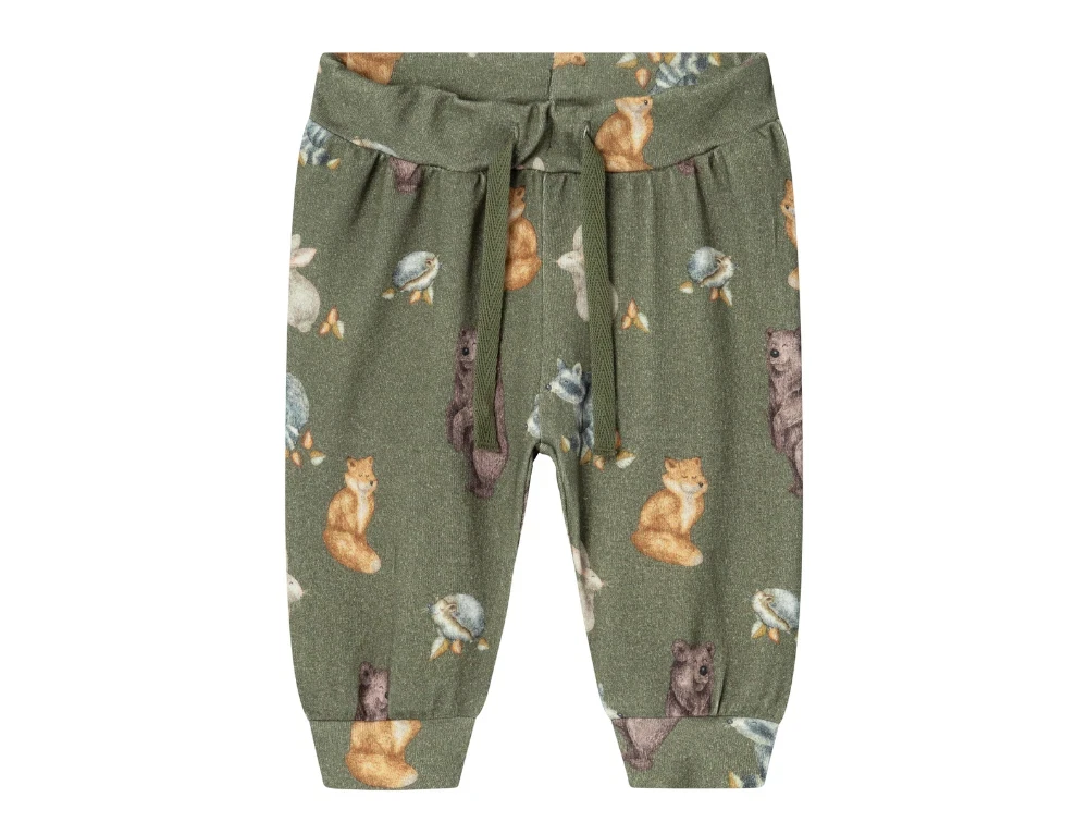 Bløde bukser i farven tea leaf med print af dyr fra Name It.