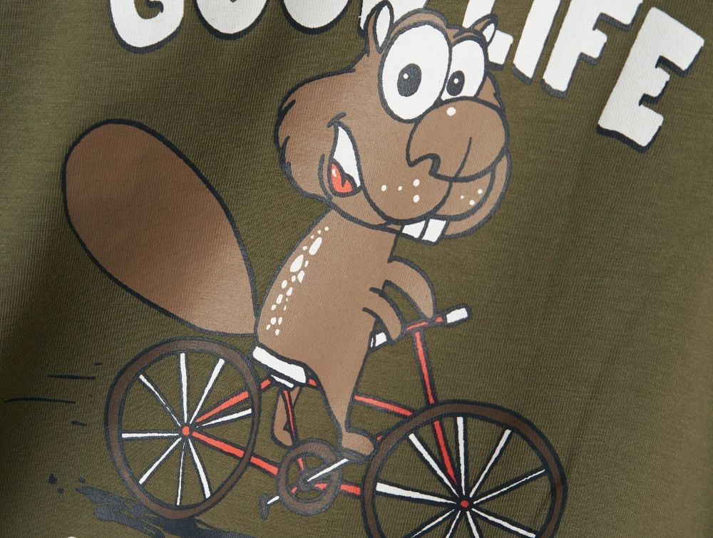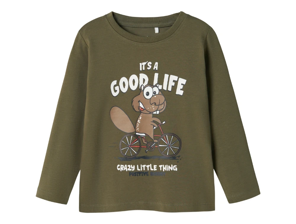 Langærmet top i farven tea leaf med 'good life' print fra Name It.