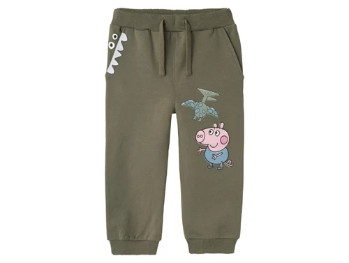 Sweatpants i farven tea leaf med Gurli Gris-print fra Name It.