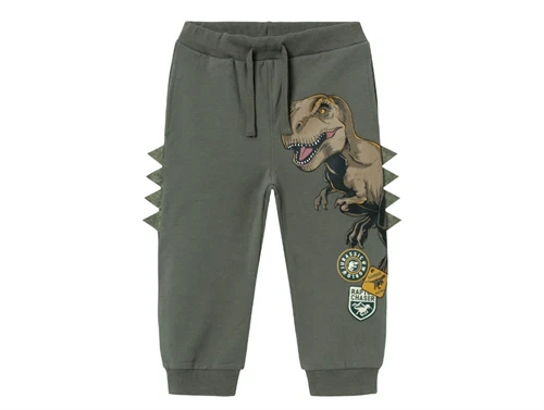 Sweatbukser i farven tea leaf med Jurassic World-print fra Name It.