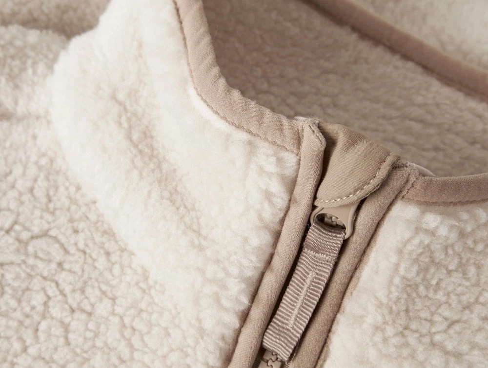 Name It teddy jakke i lys beige med lysebrun brystlomme og lynlås