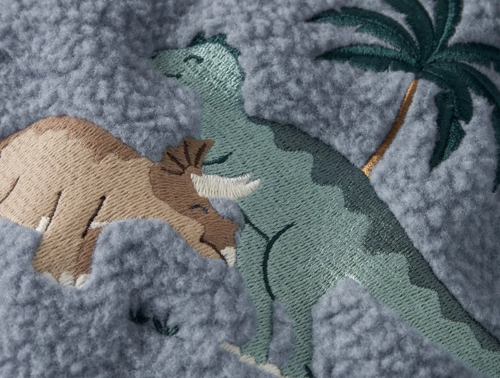 • Broderet dinosaurmotiv på bryst og ryg