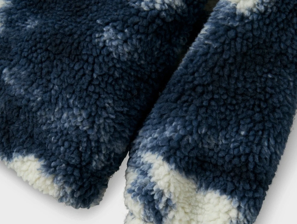 Jakken lukkes med lynlås med hagebeskytter og har sidelommer samt en brystlomme med lynlås. Elastiske kanter ved manchetter og bund giver en behagelig pasform. Det bløde teddylook og det moderne camouflage mønster i blå nuancer gør den til en oplagt hverdagsjakke i efterår og forår.