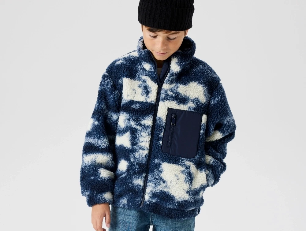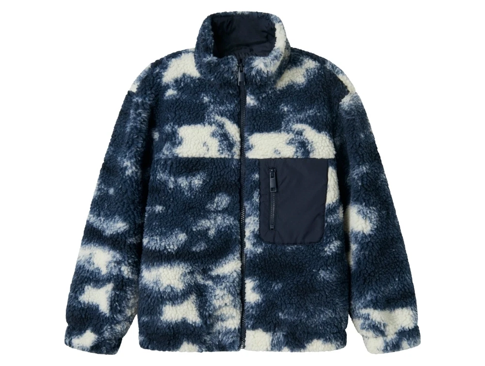 Teddyjakke med camouflage mønster i blå nuancer (navy blazer) fra Name It.