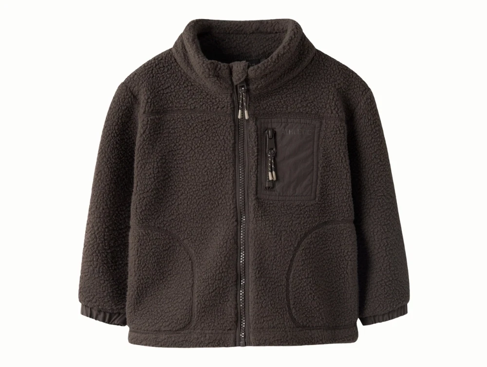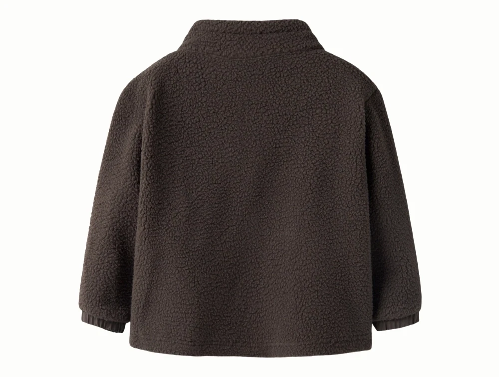 Name It teddyjakke i brun nuance med lynlåsName It teddyjakke med brystlomme og lynlåsName It teddyjakke set bagfra i brun nuance