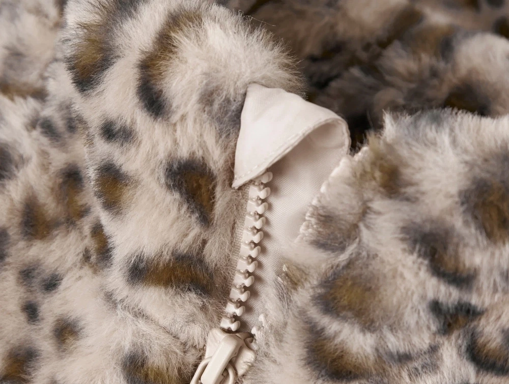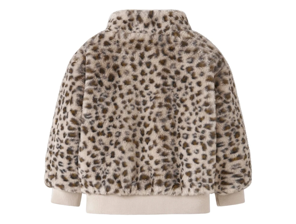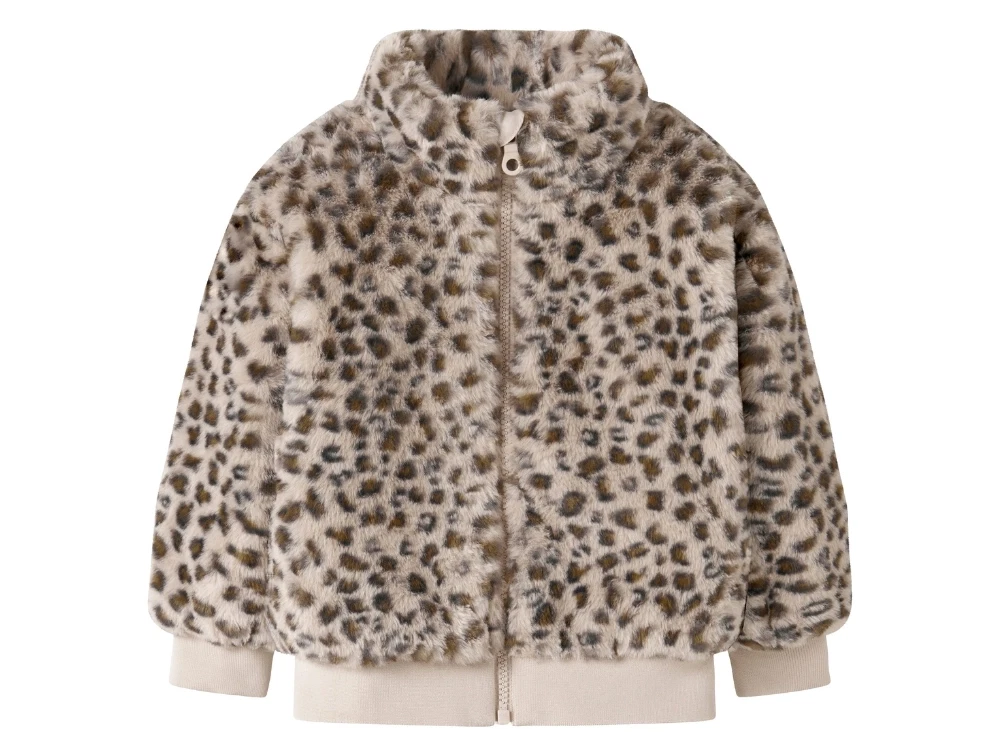 Name It teddyjakke i beige med leopardprint og lynlåslukning