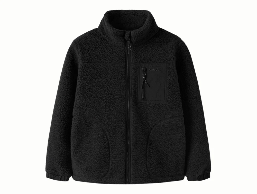 Teddyjakke i sort fra Name It med enkel og funktionel opbygning.