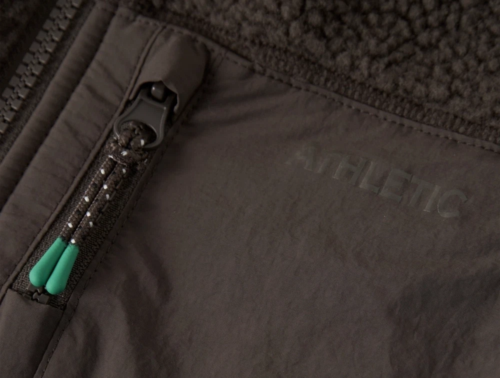 Vesten har høj krave og lukkes med lynlås foran. En lynlåsvagt beskytter huden mod at komme i klemme. Sidelommer giver plads til små hænder, og brystlommen med lynlås tilfører et praktisk element i hverdagen.