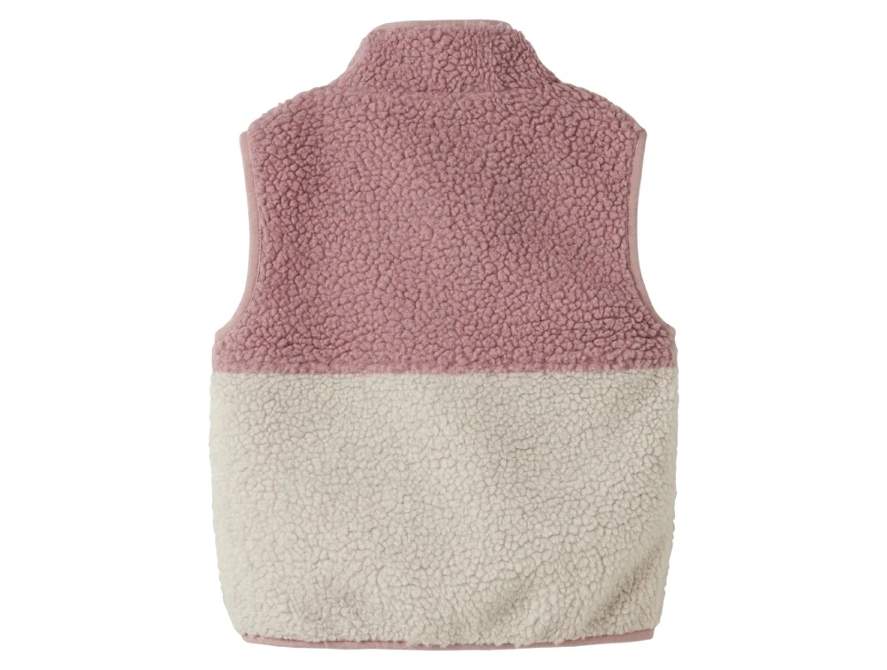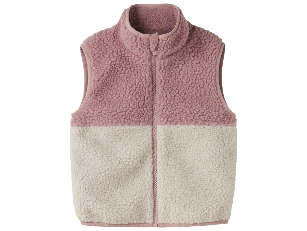 Teddyvest i rosa violet nuance (woodrose) og råhvid fra Name It.