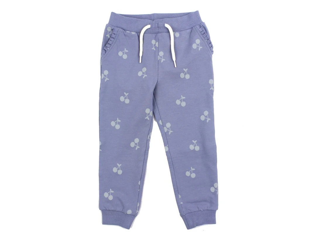 Sweatbukser fra Name It i farven tempest med kirsebærprint
