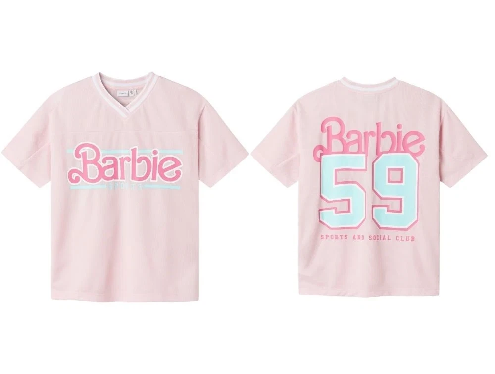Toppen er designet til børn og har en afslappet pasform, korte ærmer og en let og fleksibel kvalitet, som sikrer god bevægelsesfrihed. Barbie er den ikoniske modefigur fra Mattel, kendt for at inspirere kreativitet og drømme hos børn verden over. Printet er lavet i en blød gummieffekt, der føles behagelig mod huden og giver toppen et moderne og legende udtryk.