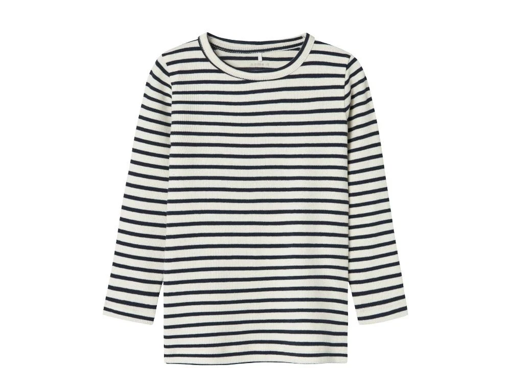 Klassisk langærmet rib t-shirt med striber i farven dark sapphire fra Name It.