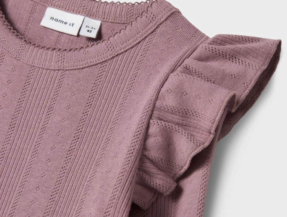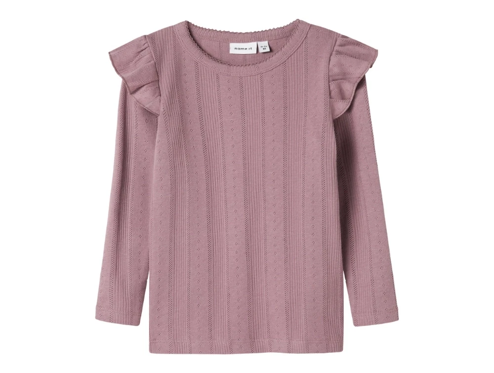 Name It bluse i rosa elderberry med flæsedetaljer og hulmønster