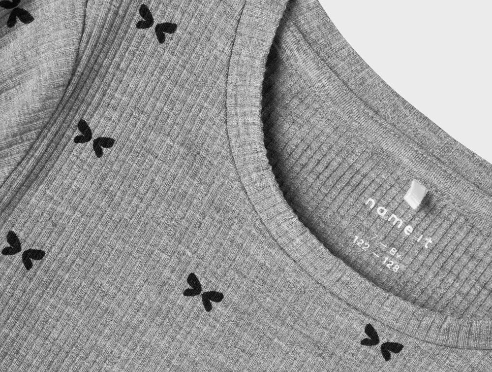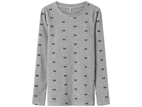 Langærmet top i rib i gråmeleret med sløjfer fra Name It.