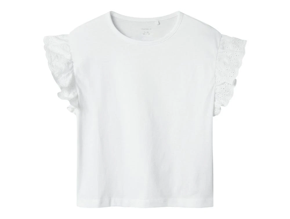 Hvid top fra Name It med fine flæsedetaljer og broderi.