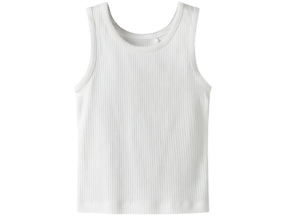Kort hvid ribtop fra Name It med rund hals og tætsiddende pasform.