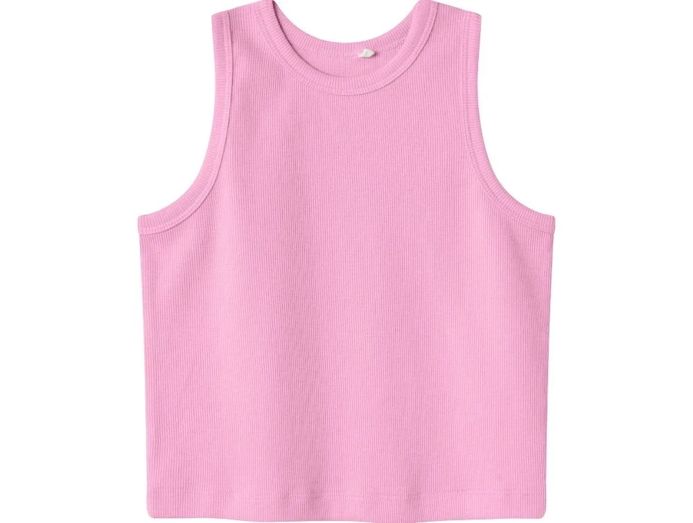 Blød og strækbar tanktop fra Name It i en fin ribstrikket kvalitet, der giver god elasticitet og en komfortabel pasform.