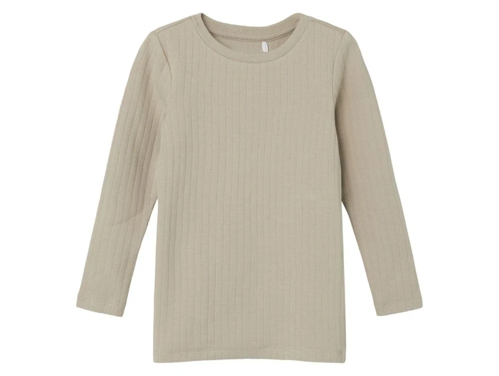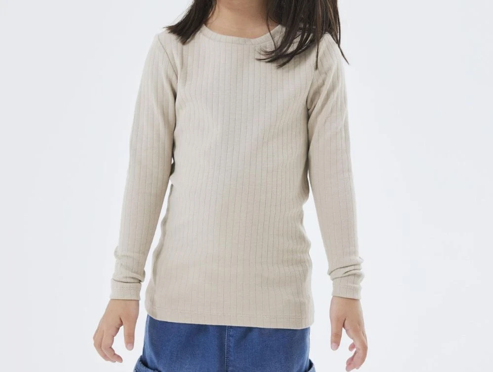 Ribbet langærmet top i beige nuance fra Name It.