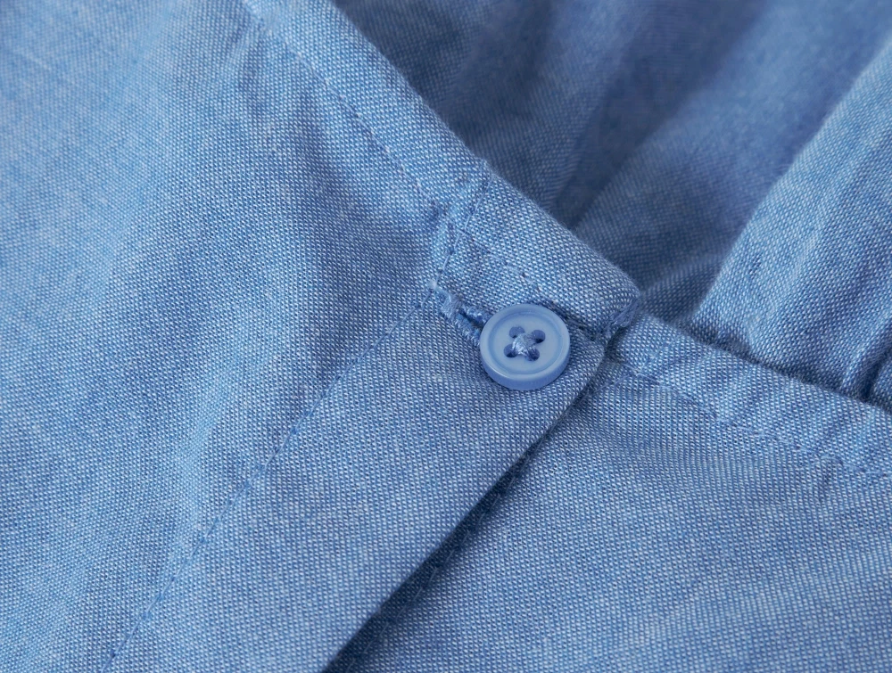 Materialet er let og blødt, hvilket gør toppen behagelig på varme dage. Den vævede chambray kvalitet giver stoffet et klassisk udtryk.