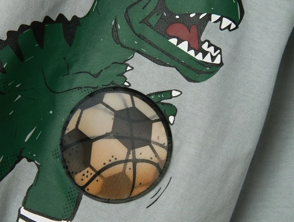 Toppen er lavet i en blød og fleksibel jerseykvalitet med rund hals og almindelig pasform. Det gummiagtige print føles blødt mod huden.