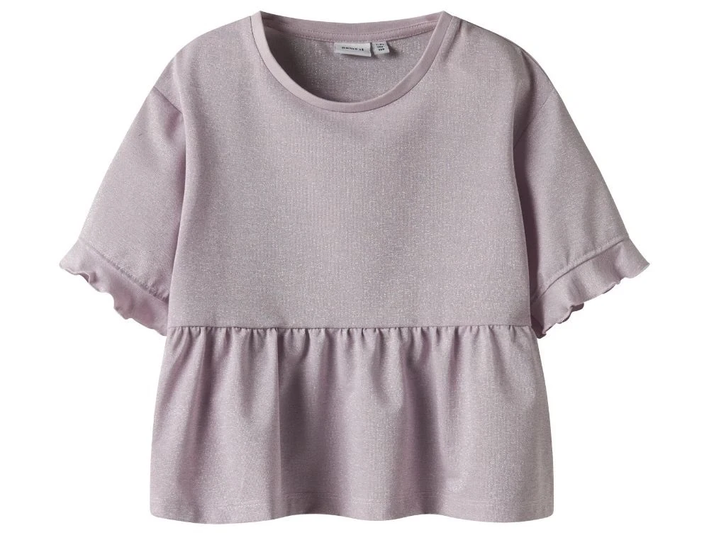 Kort lyserød top med glitter fra Name It i blød jerseykvalitet.
