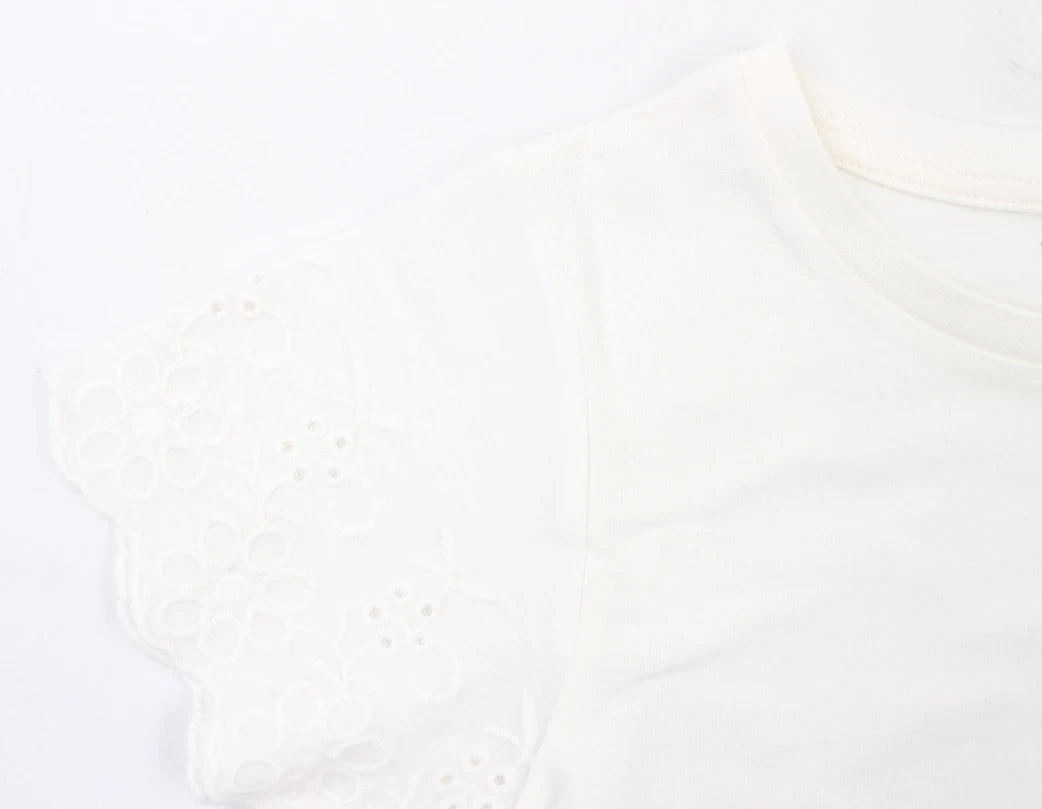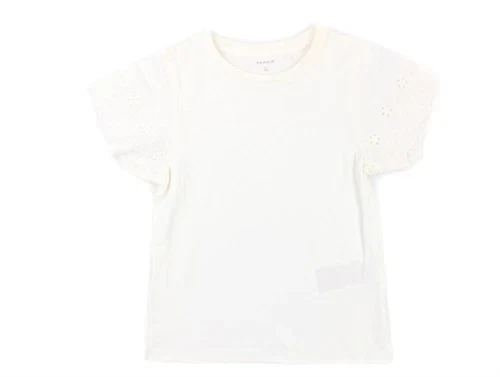 T-shirt top i farven white alyssum med fine blondeærmer fra Name It.