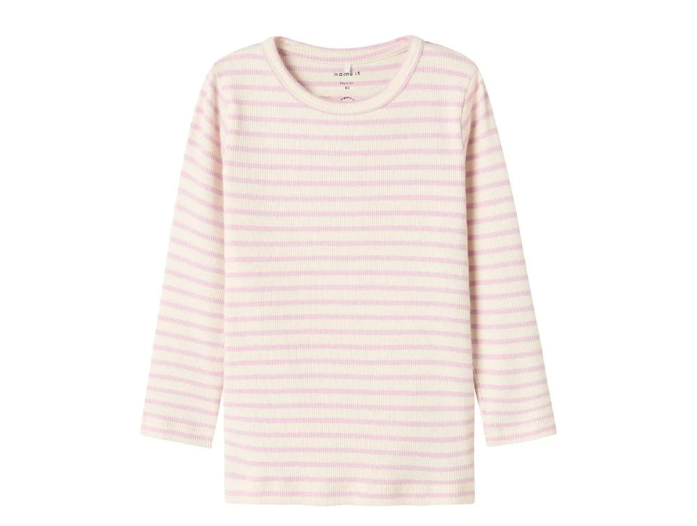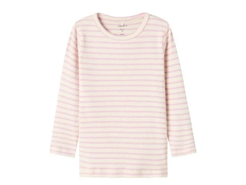 Klassisk langærmet rib t-shirt med striber i farven winsome orchid fra Name It.