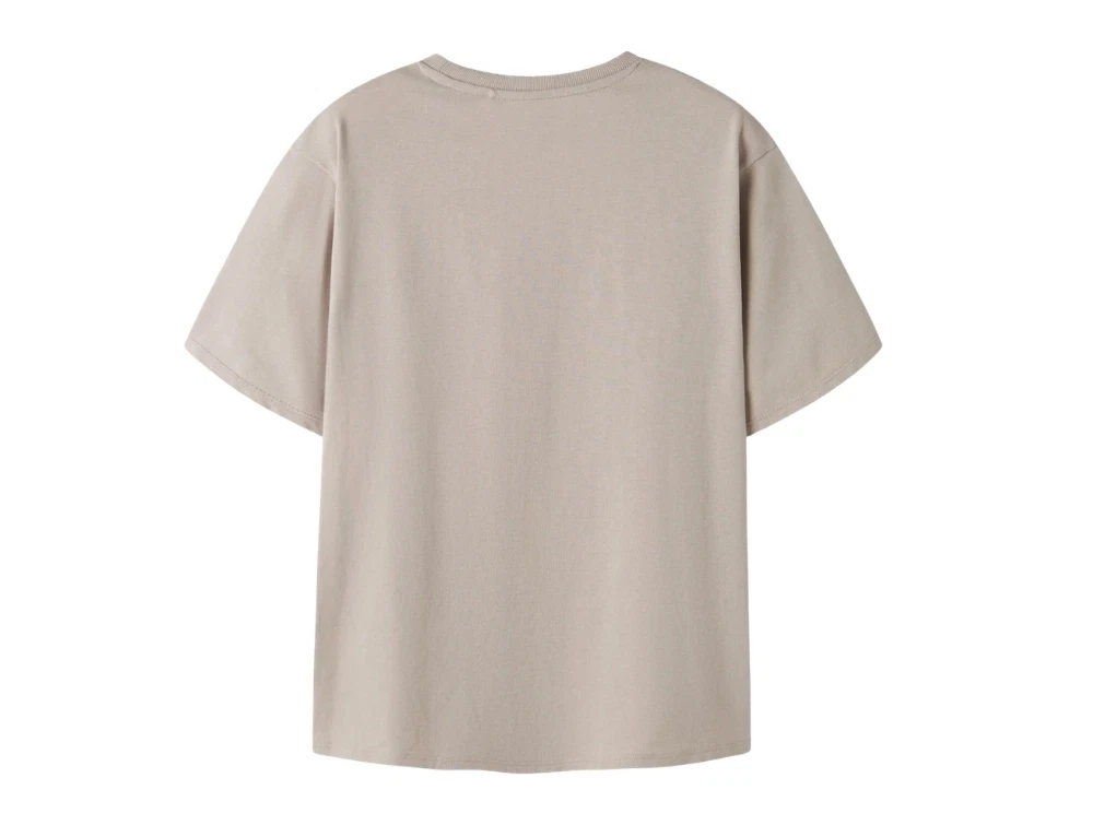 Name It t-shirt beige med badge foranName It t-shirt beige badge detaljeName It t-shirt beige bagfra