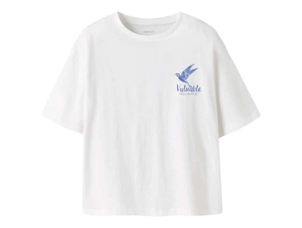 T-shirt i hvid nuance (bright white) fra Name It med grafisk fugleprint.