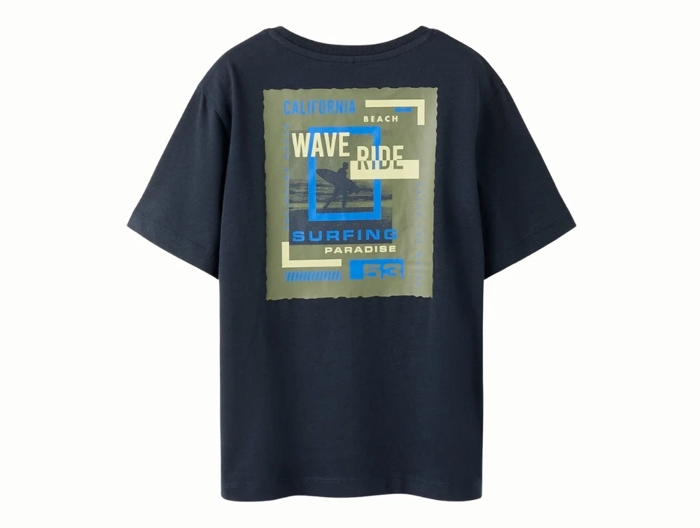 Name It t-shirt i navy nuance salute med wave ride printName It t-shirt i navy nuance salute med stort print på ryggenName It t-shirt i navy nuance salute set bagfra