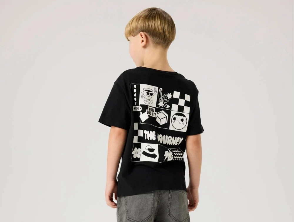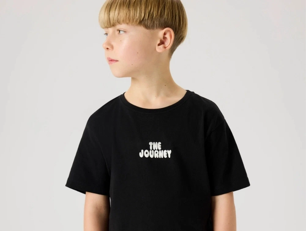 Name It t-shirt i sort med the journey print foranName It t-shirt i sort med the journey print på modelDreng iklædt Name It t-shirt i sort med stort the journey print bagpåName It t-shirt i sort med stort the journey print bagpå